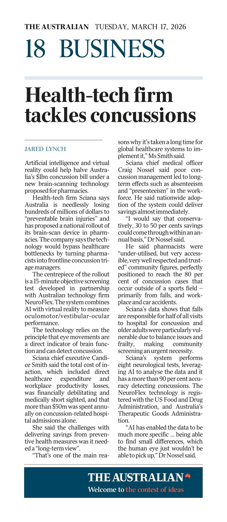 Sciana is flipping the script on healthcare by making concussion screening more accessible - right in your local pharmacy.